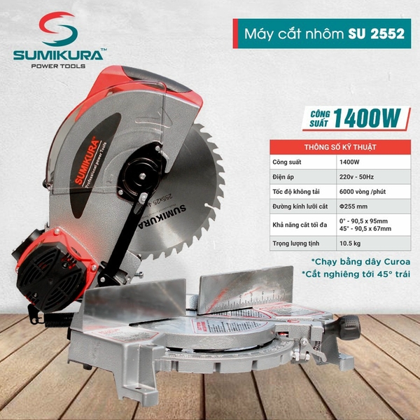 Máy cắt nhôm SU 2552 là dòng máy cắt lắp lưỡi 255mm của Sumikura với nhiều chức năng phù hợp cho công việc làm nhôm kính , cưa gỗ