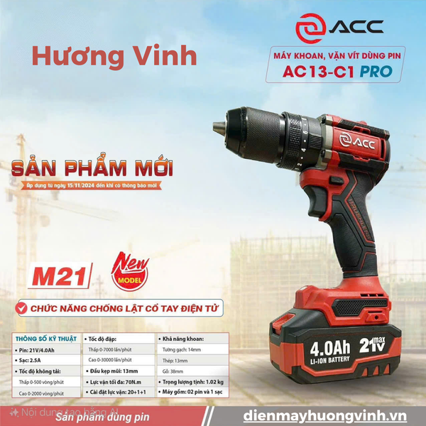 Máy khoan pin ACC AC13 C1 Pro - Hiệu năng mạnh mẽ, công nghệ hiện đại
